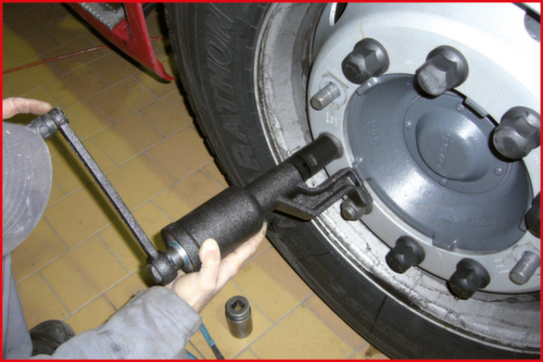 "longDescription": "Robuust losdraaigereedschap, voor bediening met meegeleverde slinger, met geïntegreerde, verstelbare steun, vierkantaandrijving volgens DIN 3120 / ISO 1174, overbrengingsverhouding 1:64, maximaal uitgaand koppel 3.800 Nm, inclusief doppen en een verlengstuk, onmisbaar als boorduitrusting voor servicevoertuigen, niet geschikt voor industriële toepassingen, niet geschikt voor gebruik met slagmoersleutels, in robuuste kunststof koffer<br>",