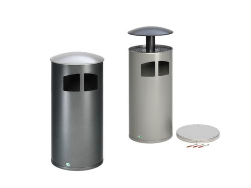 "description": "HxØ 1110x445mm, afvalbak inhoud 75l, v. vastschroeven, romp staal antiek zilver, zuilmodel, m. overkapping",