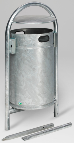 "longDescription": "<h2>Afvalbak met beugel</h2><strong>fraai van vorm en robuust voor buitenruimtes</strong><br><ul><li>Absoluut weerbestendig en duurzaam - gemaakt van thermisch verzinkt plaatstaal</li></ul><br><h3>De keuze is aan jou:</h3><ul><li><strong>snelle of extra duurzame montage</strong> - voor vastschroeven of inbetonneren</li><li><strong>met regenbescherming of open</strong> - met of zonder overkapping</li><li><strong>meer kleur</strong> - met poedercoating</li></ul>",