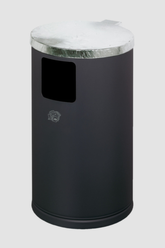 "metaDescription": "VAR Afvalbak WR 1 met deksel, 30 l, RAL7021 zwartgrijs - v. buiten, 30l, HxØ 620x300mm, wand/paal, romp staal RAL7021, kop zilverkleurig",