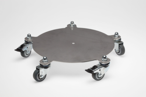 Geschikt voor levensmiddelen- en hygiënische omgevingen. met fleshouder van staal en beschermende, rubberen rand rondom de uitneemopening. van RVS. binnenbak van staal met corrosiebeschermende zinklaag. kop van staal verzinkt met slag- en krasbestendige poedercoating. 5 zwenkwielen.