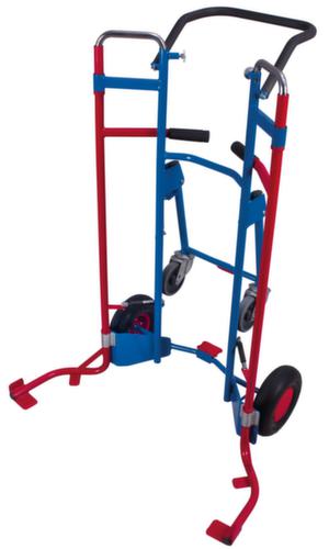 De belangrijkste maten van de VARIOfit steekwagen in één oogopslag:uitgerust met 4-delige telescooprail. ladingbeveiliging door hendelsysteem met openhoud-/klemfunctie. constructie van staal. onderstel met slag- en krasvaste poedercoating in RAL5010 gentiaanblauw. wielen met vloervriendelijke en geluidsarme lucht-banden op plaatstaal-velg. wiel Ø 260 mm. 2 steunwielen.