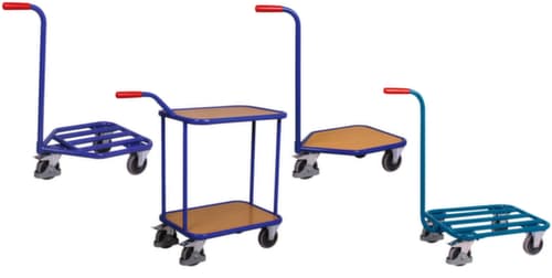 "description": "draagverm. 250kg, laadvl. LxB 605x500mm, houtplaat, RAL5010,2zwenk-/2bokwielen",