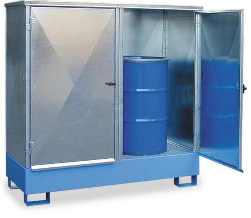 "metaDescription": "Vatenkast - HxBxD 1720x1760x750mm, v. 2x200l vat, opvangvol. 220l, dubbele vleugeldeur, bodemopvangbak RAL 5015, romp verzinkt",