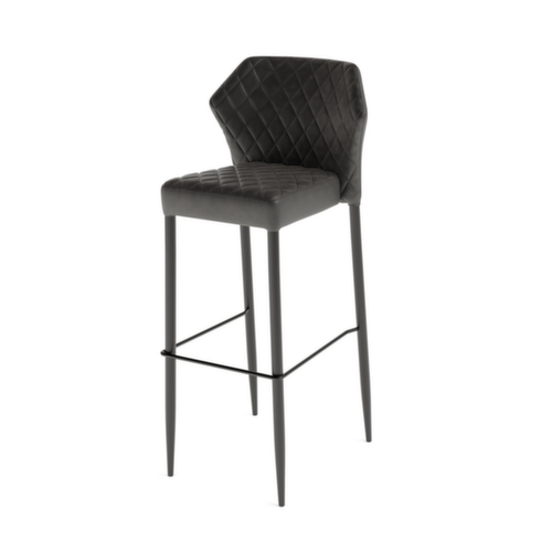 zitting van kunstleer. Zitting en rugleuning bekleed. zittingbekleding van Kunstleer (65% hars, 35% weefsel) in zwart. rugleuning met cassettestiksel. rugbekleding van Kunstleer (65% hars, 35% weefsel) in zwart. uitgerust met voetring. frame van staal met slag- en krasvaste poedercoating in zwart. De bekledingsstof is brandremmend. Ruimtebesparend 8-hoog stapelbaar.