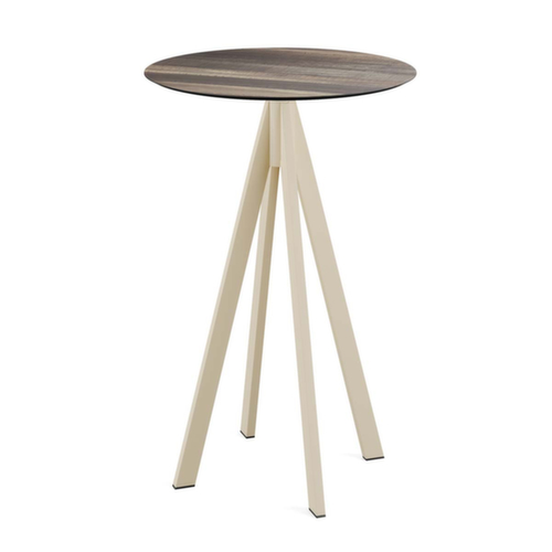 4-voetonderstel van staal in zandkleuren. blad van HPL in Tropical Wood.