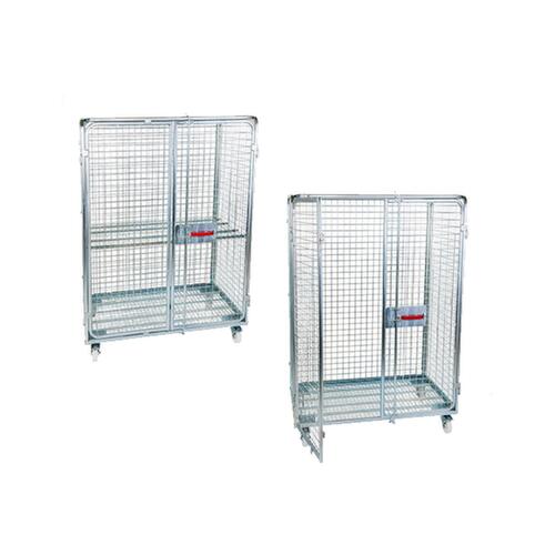 "metaDescription": "Veiligheidsrolcontainer met dubbele openslaande deur - H x L x B 1790 x 1220 x 810 mm, met platform van draadgaas, in verschillende uitvoeringen",