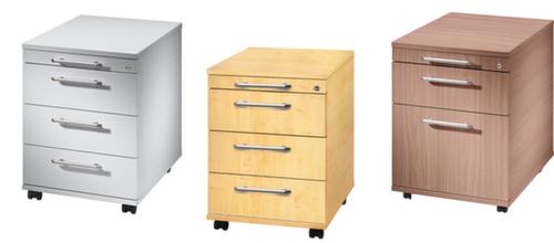 "longDescription": "<h2>Verrijdbaar ladeblok Terra Nova</h2><ul><li>Gemakkelijk te onderhouden en slijtvast - niet-verblindende en niet-reflecterende melamineharscoating</li><li><strong>soepel lopend</strong> - laden op telescoopgeleiders en tot 75 % uittrekbaar</li><li>Kantelbestendig door uittrekbaar slot</li><li>Stil sluiten dankzij soft-close functie</li><li>Bescherming tegen toegang door onbevoegden - centrale vergrendeling met cilinderslot</li><li><strong>ruimte voor allerhande kleine artikelen</strong> - met materiaallade</li></ul><br>In geen enkel kantoor mag de Terra Nova verrijdbare lade ontbreken. Onopvallend onder of naast het bureau geplaatst, zijn alle belangrijke gebruiksvoorwerpen en documenten goed gesorteerd en direct bij de hand. Dankzij de vier zwenkwielen kan de container naar elke plaats worden verplaatst. <br><br>In de praktische uittrekbare lade kunt u pennen, paperclips en andere kleine voorwerpen opbergen. Bij de uitrusting van de container kunt u kiezen tussen drie laden of één lade en één uittrekbaar hangmappenblok. Alle uittrekelementen kunnen tegelijkertijd via het slot worden vergrendeld. Dit is bijzonder belangrijk voor het beveiligen van dossiers of persoonlijke kostbaarheden. Lades en hangmappen kunnen tot 80% worden uitgetrokken op telescopische kogelgelagerde geleiders. <br>Dankzij de onderhoudsvriendelijke coating van melaminehars op alle oppervlakken is de mobiele zuil gemakkelijk te reinigen en bestand tegen schuren en brandplekken van sigaretten.<br><br><strong>Levering!</strong><br><ul><li>wordt gelijmd geleverd - grepen en wielen zelf te monteren</li></ul><strong>Meer service - dat doen wij voor u!</strong><br><ul><li>neem contact met ons op voor franco levering op locatie met of zonder montage</li></ul><br><br><strong>Niet gevonden wat u zoekt?</strong><br>Wij bieden u graag complete inrichtingen of speciale oplossingen op maat aan. Neem voor een individuele planning contact met ons op. Onze buitendienst neemt graag persoonlijk contact met u op voor deskundig advies, telefonisch of bij u op kantoor.<br>",
