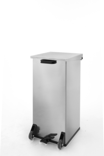 de belangrijkste maten van de afvalbak Carro Kick in één oogopslag:Voor opstelling op de vloer. bak vuurvast. Met klapdeksel - de opening gebeurt rugvriendelijk met pedaal. sluit gedempt voor een rustige werkomgeving. Eenvoudig te legen via deksel. romp van RVS. deksel van RVS. Om de bak te kunnen verplaatsen, is hij voorzien van 2 wielen.