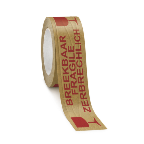 "title": "Versterkte papieren tape met voorbedrukte boodschap - Breekbaar Fragile Zerbrechlich",