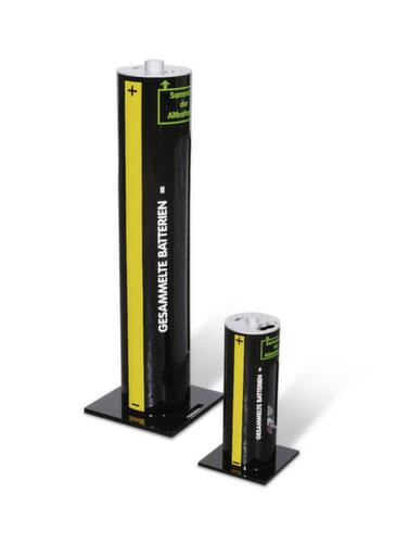 "metaDescription": "Verzamelbak voor lege batterijen, inhoud 6 l - 6l, HxØ 375x140mm, kunststof in zwart/geel, m. kijkvenster, vloeropstelling",