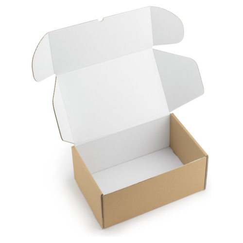De belangrijkste details in één oogopslag:Voor pakketten tot 10 kg. Grote stabiliteit door 4-voudige kartondikte aan de zijkanten en dubbele versteviging aan de voorkant. 2 zijdelingse kleppen voor het fixeren en beschermen van de artikelen. Werkt beschermt tegen stoten. afsluitbaar met lus.