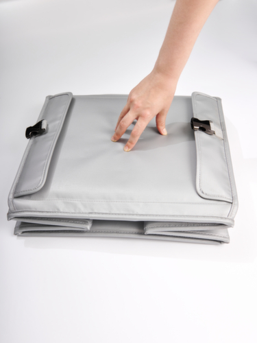 De belangrijkste maten van de VLITEX van de VLITEX accubak XL XL in één oogopslag:Veiligheidsafvalbak van glasweefsel in grijs. materiaal extreem robuust en explosieveilig dankzij hoge barstbestendigheid. Meerlagige wanden met speciale constructie zorgen door bijzonder stootvaste eigenschap voor een verhoogde bescherming tegen mechanische beschadigingen van de accu. afsluitbaar met klittenband gecombineerd met stevige gespen voor veilige sluiting. Elektrificeerbaar door speciaal ontworpen, rookafdichtende opening als kabeldoorvoer. Ruimtebesparend op te bergen, en eenvoudig en snel open- en inklapbaar voor gebruik. Voor de binnen en buiten.