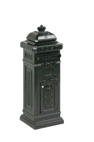 "longDescription": "<h2>Vrijstaande brievenbus</h2><strong>een echte blikvanger in een nostalgisch ontwerp</strong><br><ul><li>duurzaam en weerbestendig</li><li>Gemaakt van gegoten aluminium</li></ul><br><h3>Uitrusting:</h3><ul><li>inbrengen vanaf de voorkant, verwijderen van de voorkant en de achterkant</li><li>De klep van de insteekopening beweegt naar binnen wanneer de post wordt ingeschoven.</li><li>Veilig vergrendeld door cilinderslot</li></ul>",