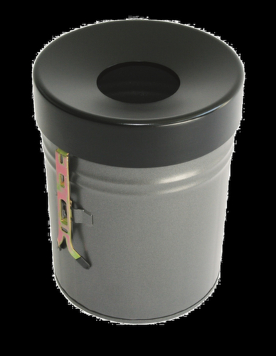 Zelfblussende afvalbak FIRE EX voor wandbevestiging, 60 l, nieuw zilver, bovendeel zwart
