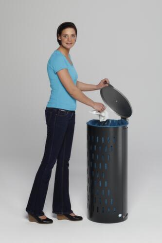 "title": "Vuilniszakstandaard van geperforeerde plaatstaal, voor 120-liter-zakken, zilverkleurig, deksel zilverkleurig",