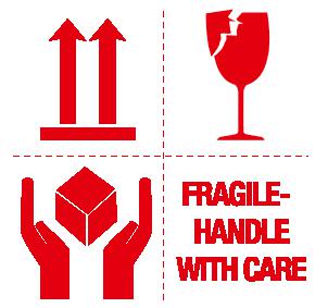 "Symbol/Text": "\"Fragile - Handle with care” en 3 symbolen",