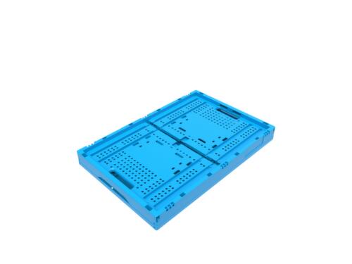In euromaat. van breukvast polypropyleen in blauw. wanden doorbroken met grijpopening aan kopzijde, legbord gesloten. eenvoudig te dragen door draaggrepen. geschikt voor levensmiddelen. Geschikt voor rollenbanen. temperatuurbestendig van -20 °C tot +70 °C.