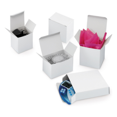 "longDescription": "<h2>Wit vouwdoosje 120 x 120 x 120 mm</h2><p>Voor het inpakken van cadeaus of producten, het organiseren of opbergen van kleine goederen - onze witte vouwdoosjes zijn uiterst veelzijdig! Alles heeft zijn plaats in deze kartonnen dozen: kleine onderdelen zoals schroeven of spijkers worden veilig opgeborgen, losse items zoals kabels en bijpassende adapterstekkers kunnen samen worden verpakt. De vouwdoosjes zijn ook ideaal als omverpakking voor cosmetica en verzorgingsproducten en als horloge- en juwelendoosjes. Waardevolle horloges of andere sieraden worden beschermd tegen krassen en zijn altijd veilig verpakt. Luxe cosmetica en parfums kunnen ook nog beter tot hun recht komen met de veelzijdige vouwdoos. Het stevige karton van hoge kwaliteit kan gemakkelijk gelabeld worden dankzij het witte, egale oppervlak en is daarom ook ideaal voor het opbergen of organiseren op kantoor. De witte buitenzijden maken de vouwdoos ook bijzonder decoratief en geschikt als geschenkdoos voor elke gelegenheid. De kartonnen doos kan bijvoorbeeld ook worden gebruikt als omverpakking voor mokken, bekers en andere relatiegeschenken, evenals productmonsters. Je kunt de vouwdoos in een paar eenvoudige stappen sluiten en voorzien van een etiket voor archivering, plakstippen of samen met vulmateriaal in de doos versturen.Alle details in één oogopslag: - Buitenkant: wit karton, glad- Binnenkant: grijs- Materiaal: stevig karton- Kwaliteit: van 400 g/m² tot 500 g/m²- Platte levering, ruimtebesparende opslag- Eenvoudige montage van de kartonnen doosDecoreer je kartonnen doos met onze cadeaulinten of lintstrikken en hij zal er bijzonder elegant uitzien. In combinatie met raffia, bijvoorbeeld, wordt de natuurlijke uitstraling van de kartonnen doos extra benadrukt. Hebt u extra opvulmateriaal nodig voor uw vouwdoos? Naast de klassieke noppenfolie zijn onze inpakzijde of kleurrijke papierwol bijzonder geschikt voor cadeaus.</p><br>",