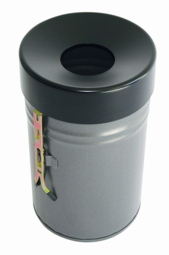 "metaTitle": "Zelfblussende afvalbak FIRE EX voor wandbevestiging, 16 l, nieuw zilver, bovendeel zwart - Afvalbakken",