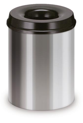 "metaDescription": "Zelfdovende prullenmand van staal, 15 l, aluminium, bovendeel zwart - vlamdovend, 15l, HxØ 360x260mm, kop zwart, romp staal aluminium",