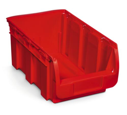 van breukvast polypropyleen in rood. temperatuurbestendig van -10 °C tot +60 °C. met greeplijst. grijpopening aan kopzijde. met etikethouder voor individuele en duidelijke belettering. Meervoudig.