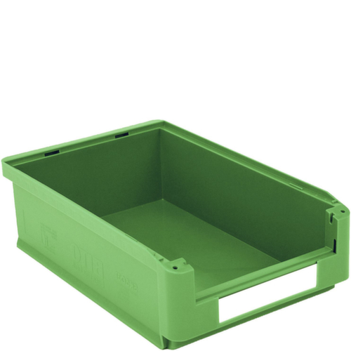 van breukvast polypropyleen in groen. temperatuurbestendig van -20 °C tot +90 °C. geschikt voor levensmiddelen, geschikt voor onverpakte levensmiddelen volgens RAL A 74, cadmiumvrij. legbord geruwd. eenvoudig transport door verzonken greep aan kopzijde. met etiketteervlak. geschikt voor rollenbanen en doorrolstellingen.