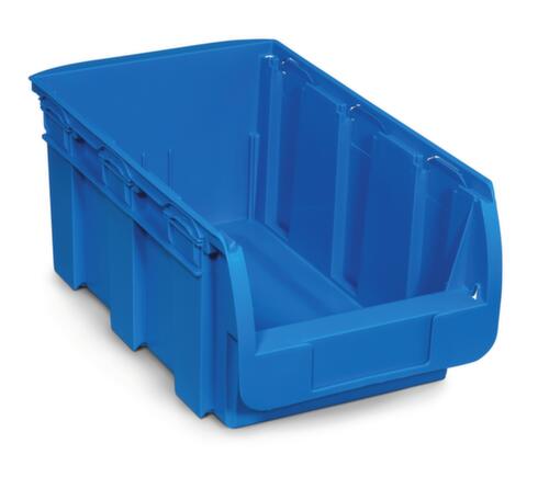 van breukvast polypropyleen in blauw. temperatuurbestendig van -10 °C tot +60 °C. met greeplijst. grijpopening aan kopzijde. met etikethouder voor individuele en duidelijke belettering. Meervoudig.