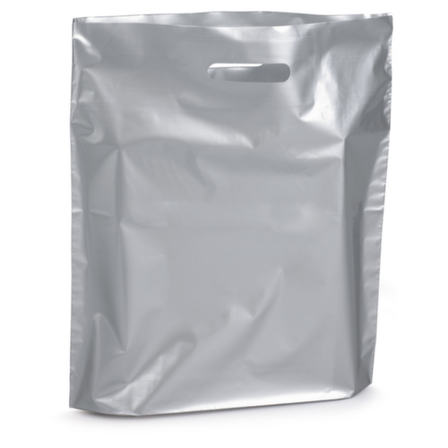 "metaTitle": "Zilvere plastic draagtas met gestanste handgrepen 38x8x44cm - Taschen & Tüten (Keine Locale)",