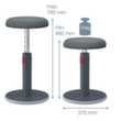 zitting van schuimstof. Zitting bekleed. zittingbekleding van luchtig 3D-net in grijs. hoogteverstelling via De hoogte kan traploos worden ingesteld met de ontgrendelknoppen. standvoetonderstel voor stevig staan. frame standvoet met afgeronde bodem, die actieve beweging door op- en neerbewegen bevordert. onderstel in fluweelgrijs. frame met de onderkant van de voet is antislip, waardoor het zitmeubel ook bij beweging stevig staat.
